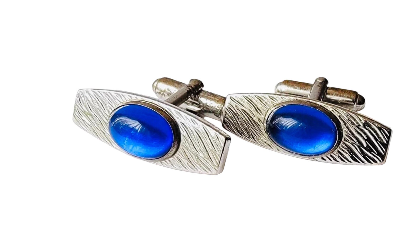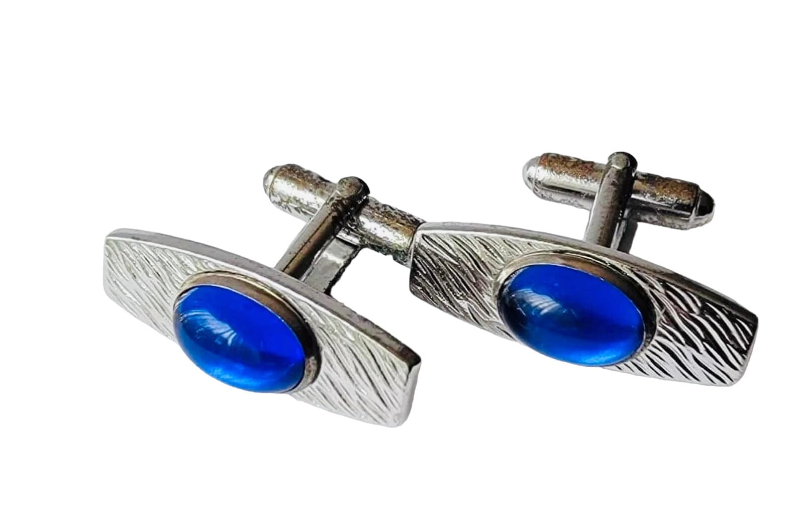 Classic 1950s Cufflinks, Mid Century Modern Minimalist Cufflinks, Atomic Mod Design, Silvertone Blue Cuff Links