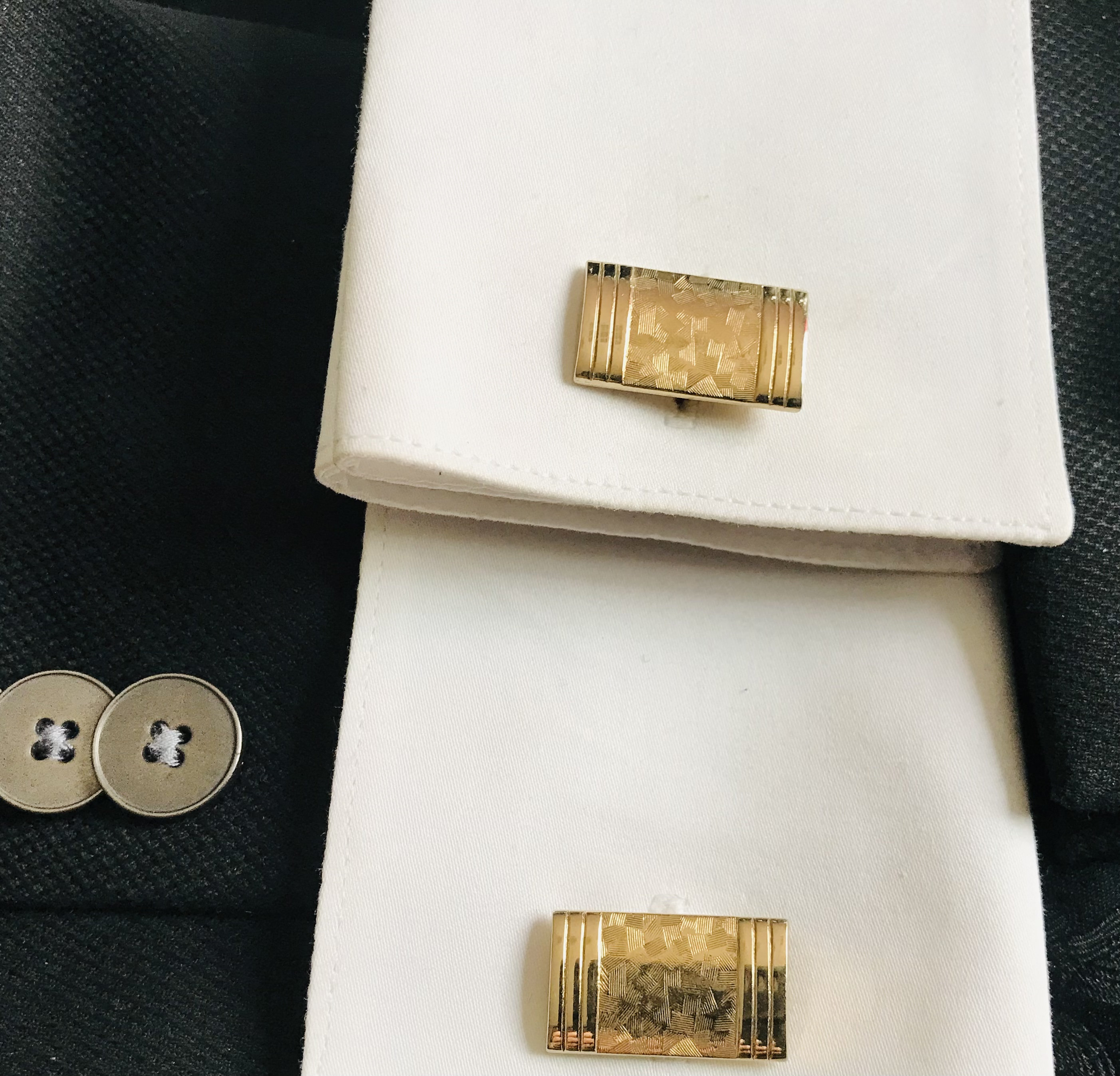 Vintage Cufflinks, Stylish Mid Century Cuff Links, Polished Refined Formal Design, Goldtone Rectangular, Retro Simplicity, Prom Groom Wear